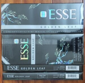 Thuốc lá ESSE Golden Leaf hộp giấy (hay còn gọi là Esse đen), cây gồm 10 bao, 20 điếu. Đây là dòng Esse cao cấp, điếu nhỏ slim với 0.3 mg Tar và 0.3 Nicotin. Hương thơm và nhẹ nhàng.