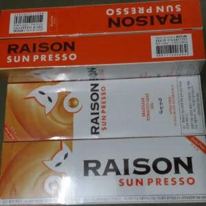 Thuốc lá Raison sun Presso Hàn Quốc mang đến cho người thưởng thức hai hương vị cùng lúc. Ban đầu là vị cam sau đó chuyển sang hương bạc hà tươi mát sau khi viên đổi vị bên trong đầu lọc được làm vỡ. Mỗi điếu thuốc chứa 6mg dầu hắc và 0.5mg nicotine.